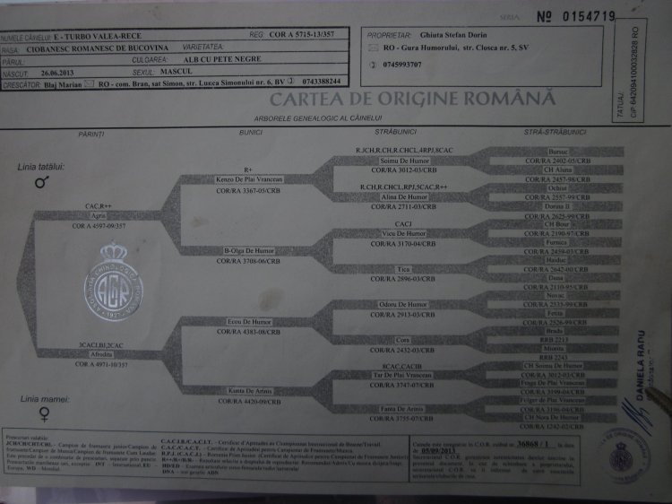 Contact: Ghiuta Stefan Dorin ~ 0745993707 ~ email Canisa "de HUMOR" vinde catelusi de C.R. de Bucovina din doua cuiburi diferite.
